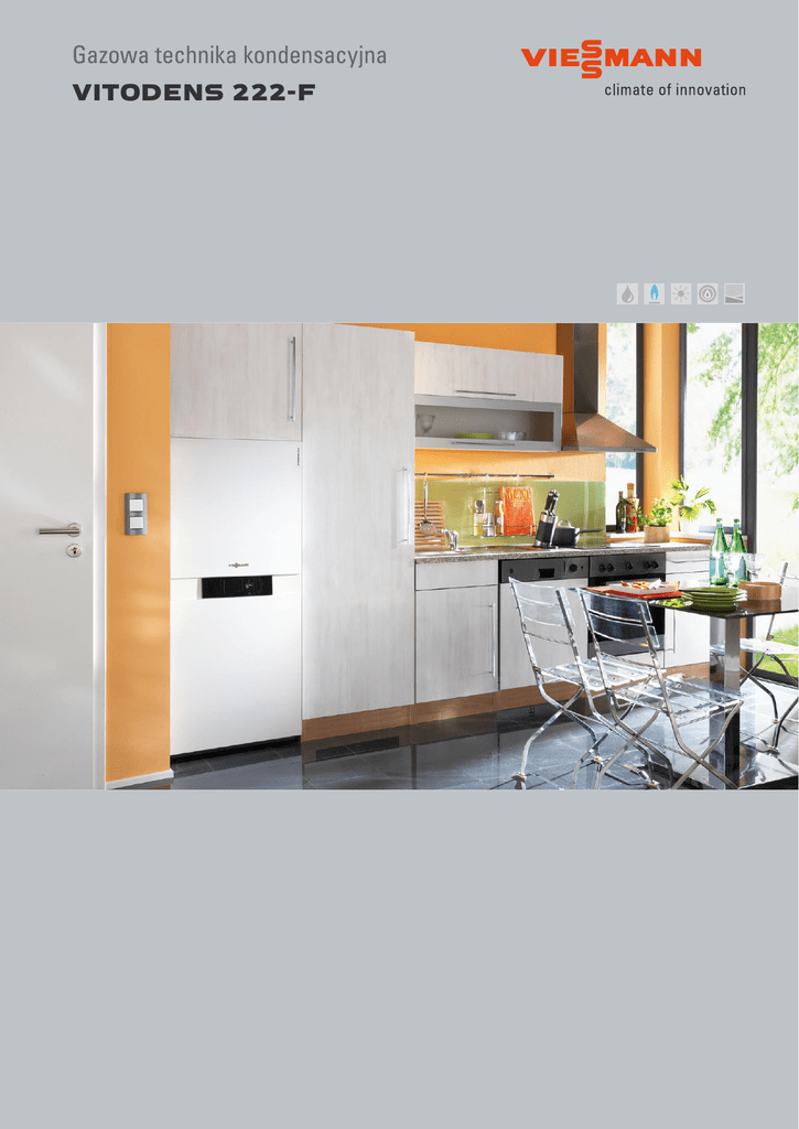 Gazowa technika kondensacyjna VITODENS 222-F Gazowa technika kondensacyjna Vitodens 222-F 3,2 do 35 kW Kompaktowy, stojący kocioł kondensacyjny z zabudowanym zasobnikiem c.w.u. ładowanym warstwowo lub przez wężownicę grzewczą, o wysokiej wydajności ciepłej wody i wyjątkowo łatwej obsłudze. Palnik promiennikowy MatriX z układem kontroli spalania Kto mówi, że Państwa nowa centrala grzewcza nie może stać również w kuchni? W przypadku stojącego, kompaktowego kotła kondensacyjnego Vitodens 222-F nie stanowi to żadnego problemu. Pasuje on idealnie do wymiarów modułu Państwa mebli kuchen nych, w ogóle nie rzuca się w oczy i wyróżnia się wyjątkowo oszczędną pracą. Atrakcyjny cenowo i zajmujący niewiele miejsca Nowy gazowy kocioł kondensacyjny Vitodens Wymiennik ciepła Inox-Radial z kwasoodpornej stali szlachetnej odporny na duże obciążenia termiczne 222-F idealnie nadaje się do modernizowanej instalacji grzewczej i na wymianę starego gazowego kotła grzewczego. Kompaktowa centrala grzewcza została zaprojektowana dla zapewnienia wysokiego komfortu ciepłej wody użytkowej, która ogrzewana jest w zasobniku warstwowym o pojemności 100 lub 130 litrów (dla kotła do 35 kW), lub podgrzewaczu o pojemności 130 litrów wyposażonym w wężownicę grzewczą. Jak wszystkie urządzenia kompaktowe gazowy kocioł kondensacyjny 222-F wymaga niewiele miejsca – jego szerokość i głębokość odpowiadają znormalizowanym wymiarom modułów mebli kuchennych. Sprawdzony w praktyce palnik cylindryczny MatriX z układem kontroli spalania Lambda Pro Control dopasowuje się automatycznie do rodzaju i zmieniającej się jakości gazu, gwarantuje zawsze wysoką sprawność kotła: do 109%. Unikalna konstrukcja palnika MatriX i wymiennika Inox-Radial, wykonanych z wysokiej jakości nierdzewnej stali szlachetnej, gwarantuje niskie koszty ogrzewania oraz bezawaryjną eksploatację kotła przez wiele lat. Inteligentna regulacja procesu spalania Vitodens 222-F posiada dla wszystkich zakresów mocy układ kontroli spalania Lambda Pro Control. Rozpoznaje on automatycznie rodzaj zastosowanego gazu oraz dopasowuje pracę kotła do zmieniającej się jakości gazu, np. przez dodawanie biogazu do gazu ziemnego. Zapewnia zawsze wysoką sprawność kotła w każdych warunkach jego pracy. Dzięki L ambda Pro Control przejście z gazu płynnego na ziemny nie wymaga żadnych przeróbek kotła. Palnik MatriX z układem kontroli spalania i wymiennik Inox-Radial zostały skonstruowane i są produkowane przez firmę Viessmann. Komfortowy regulator Vitotronic Zarówno wyspecjalizowana firma instalatorska jak i użytkownik w takim samym stopniu będą korzystać z zalet łatwego w obsłudze regulatora Vitotronic – menu sterowania jest logiczne i łatwo zrozumiałe, wyświetlacz jest podświetlony, czytelny i ma dobry kontrast. W razie wątpliwości funkcja pomocy informuje o dalszym sposobie postępowania. Graficzny interfejs użytkownika służy także do odczytu charakterystyk grzewczych. W razie potrzeby, dzięki odpowiednio długiemu przewodowi, moduł obsługowy może być zamontowany na uchwycie ściennym w innym pomieszczeniu niż kocioł. Łatwy montaż Przy pomocy zestawu montażowego i dzięki konstrukcji pozwalającej na ustawienie kotła w płaszczyźnie ściany, zakres zastosowań tego kompaktowego urządzenia jest wyjątkowo szeroki. Jest on w dużym stopniu fabrycznie zmontowany i szybko się go instaluje, A dzięki dużemu udziałowi elementów konstrukcyjnych z innych kompaktowych urządzeń kondensacyjnych firmy Viessmann, elementy do konserwacji i serwisu są szybko dostępne po korzystnych cenach. 1 2 4 1 2 4 3 5 3 5 Vitodens 222-F 6 7 1 2 3 4 5 Vitodens 222-F typ B2SA z emaliowanym Vitodens 222-F typ B2TA z ładowanym 6 podgrzewaczem c.w.u. z wężownicą warstwowo zasobnikiem c.w.u. 7 owierzchnia wymiany ciepła P Inox-Radial ze stali szlachetnej o grubości ścianki 1,8 mm Palnik gazowy MatriX z systemem regulacji spalania Lambda Pro Control Regulator Vitotronic Naczynie przeponowe Pompa obiegu grzewczego Podgrzewacz c.w.u. z wężownicą grzewczą Zasobnik c.w.u. ładowany warstwowo dla obszarów z twardą wodą Przegląd zalet: Prosta obsługa regulatora Vitotronic dzięki prowadzeniu użytkownika przez menu i możliwość prezentacji graficznej, np. charakterystyk grzewczych G azowy, kompaktowy kocioł kondensacyjny ze zintegrowanym, ładowanym warstwowo zasobnikiem lub podgrzewaczem c.w.u. z wężownicą, 3,2 do 35 kW lub 3,2 do 26 kW Sprawność znormalizowana do 98% (Hs ) / 109% (Hi ) Emaliowany, ładowany warstwowo zasobnik c.w.u. o pojemności 100 litrów (35 kW: 130 litrów) lub emaliowany podgrzewacz c.w.u. z wężownicą, o pojemności 130 litrów D ługotrwały i efektywny dzięki wymiennikowi ciepła Inox–Radial z kwasoodpornej stali szlachetnej – brak minimalnego natężenia przepływu Cylindryczny palnik gazowy MatriX o długim okresie eksploatacji dzięki siatce MatriX ze stali szlachetnej – odporny na duże obciążenia termiczne Prosty w obsłudze nowy regulator z wyświetlaczem tekstowym i graficznym oraz oddzielnym modułem obsługowym do montażu na cokole ściennym Energooszczędna pompa obiegowa o dużej wydajności (odpowiada klasie energetycznej A) Układ kontroli spalania Lambda Pro Control dla zapewnienia trwale wysokiej sprawności i niskich wartości emisji substancji szkodliwych Uniwersalny zestaw montażowy do indywidualnego montażu w płaszczyźnie ściany Nie jest wymagany żaden boczny odstęp serwisowy Naczynie przeponowe c.w.u. i pompa cyrkulacyjna mogą być zintegrowane w urządzeniu Zestaw montażowy odpowiedni do wymiarów i wzoru urządzenia umożliwia regulację mieszanych obiegów grzewczych. Viessmann sp. z o.o. ul. Karkonoska 65 53-015 Wrocław tel. 71/ 36 07 100 Infolinia: 801 0801 24 www.viessmann.pl Dane techniczne Vitodens 222-F Vitodens 222-F – kompaktowy kondensacyjny kocioł gazowy ze zintegrowanym zasobnik