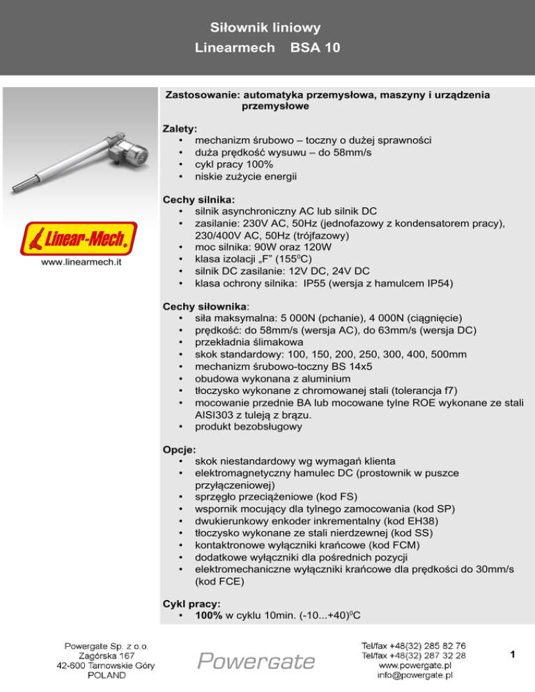 Siłownik liniowy Linearmech BSA 10