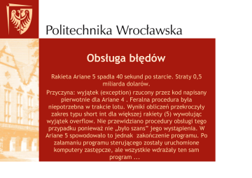 wyjątek. Jeśli uwaŜasz, Ŝe procedura obsługi wyjątku moŜe coś