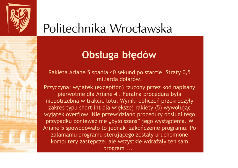 • W obsłudze błędów trudno wykazać się