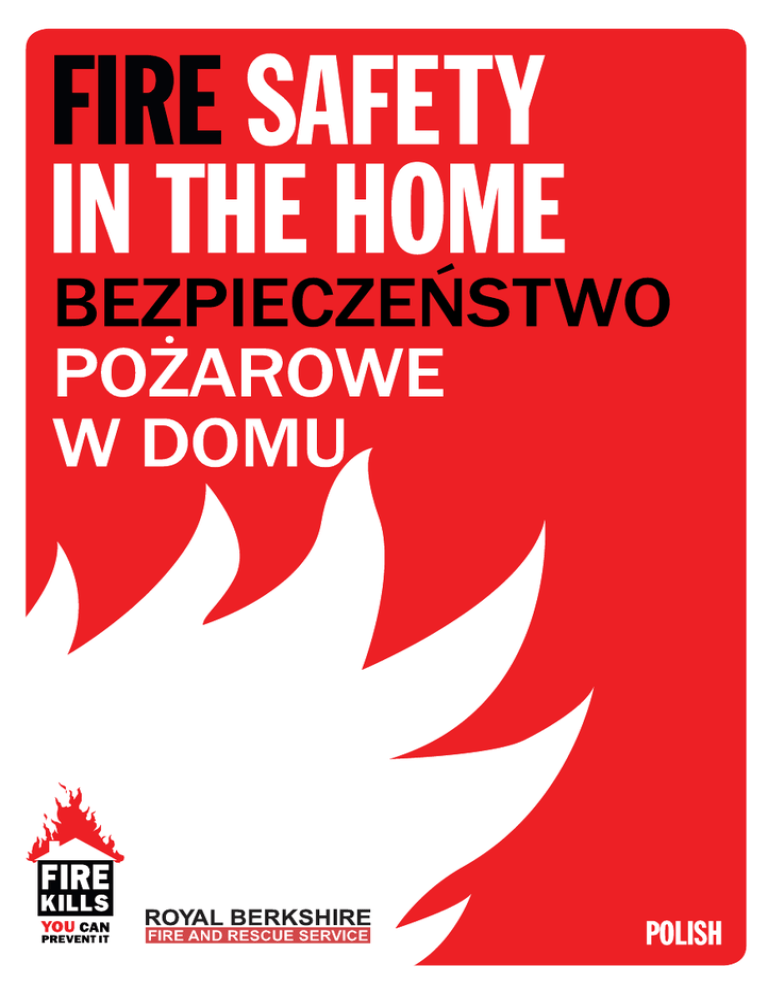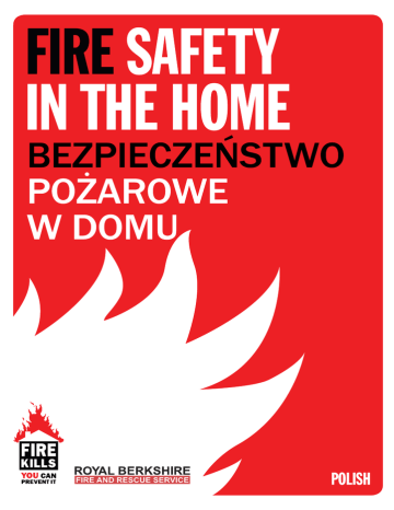 Did you know…? Czy wiesz, że…? • You’re twice as likely to die in a fire if you don’t have a smoke alarm that works. • Istnieje dwukrotnie większe prawdopodobieństwo, że zginiesz w pożarze, jeśli nie posiadasz sprawnego czujnika dymu. • 90 people die each year because the battery in their smoke alarm was flat or missing. • Over half of home fires are caused by cooking accidents. • More than five fires a day are started by candles. • Every three days someone dies from a fire caused by a cigarette. • Faulty electrics (appliances, wiring and overloaded sockets) cause around 7,000 house fires across the country every year. • 90 osób ginie co roku, ponieważ bateria w ich czujniku dymu jest wyczerpana lub nie jest zamontowana. • Ponad połowa pożarów w domach spowodowana jest wypadkami przy gotowaniu. • Ponad pięć pożarów w ciągu dnia zaczyna się z powodu zapalonych świec. • Co trzy dni ginie ktoś z powodu pożaru spowodowanego papierosem. • Wadliwa instalacja elektryczna (urządzenia, okablowanie i przeciążone gniazdka) powoduje około 7 tysięcy pożarów domów w ciągu roku w całym kraju. T C Y E O T U O R R P OME WITH H O K M SA L A R M S E CZUJNIKI DYMU OCHRONIĄ TWÓJ DOM The easiest way to protect your home and family from fire is with a smoke alarm. Najprostszy sposób ochrony Twojego domu i rodziny przed ogniem to czujnik dymu. Get it. Install it. Check it. It could save your life. Kup go. Zainstaluj. Sprawdź. To może uratować Twoje życie. Choosing your smoke alarm Wybór czujnika dymu • Fit smoke alarms on every level of your home. • Zainstaluj czujniki dymu na każdym piętrze swojego domu. • Smoke alarms are cheap and easy to install. • They are available from DIY stores, electrical shops and most high street supermarkets. • There are a variety of different models to choose from. Your local Fire and Rescue Service will be happy to give you advice on which one is best suited for you. • Look out for one of these symbols, which shows the alarm is approved and safe. • Czujniki dymu są niedrogie i łatwe w montażu. op tip T Najlepsza rada • Są one dostępne w sklepach dla majsterkowiczów, sklepach elektrycznych i w większości centrów handlowych. • Można wybierać w zróżnicowanej gamie modeli. Miejscowa straż pożarna (Fire and Rescue Service) chętnie pomoże wybrać alarm najlepiej dopasowany do Twojego domu. Fit smoke alarms Zainstaluj czujniki dymu British Standard Kitemark • Szukaj jednego z tych symboli, które pokazują, że czujnik jest atestowany i bezpieczny. £5 MOŻE URATOWAĆ TWOJE ŻYCIE £5 save couldlife your How to make sure your smoke alarm works Jak upewnić się, że czujnik dymu jest sprawny Test the batteries in your smoke alarm every week. Change them every year. Never remove them. Co tydzień sprawdzaj baterie w swoim czujniku dymu. Wymieniaj je raz w roku. Nigdy ich nie usuwaj. • Never disconnect or take the batteries out of your alarm if it goes off by mistake. • Nigdy nie rozłączaj ani nie usuwaj baterii ze swojego czujnika dymu, jeśli alarm włączy się przez przypadek. • Standard battery operated alarms are the cheapest option, but the batteries need to be replaced every year. • Standardowe czujniki na baterie są najtańsze, jednak należy pamiętać o wymianie baterii raz na rok. • A lot of people forget to check the batteries, so longer life batteries are better. • Wielu ludzi zapomina o sprawdzaniu baterii, więc baterie o przedłużonej żywotności są lepsze. • An alarm with ten-year batteries is the best option. • Czujnik dymu z bateriami 10-letnimi to najlepsza opcja. • Mains-powered alarms are powered by your home power supply. Generally they don’t need replaceable batteries, but need to be installed by a qualified electrician. • Czujniki sieciowe zasilane są z domowej sieci elektrycznej. Nie trzeba stosować w nich baterii wymiennych, jednak muszą one być zainstalowane przez wykwalifikowanego elektryka. • Alarms that plug into a light socket use a rechargeable battery, which is charged when the light is on. • Czujniki podłączane do wyłącznika światła wymagają stosowania baterii akumulatorowych, ładowanych gdy światło jest włączone. • You can even have linked alarms installed, so that when one alarm detects a fire they all go off together. This is useful if you live in a large house or over several levels. Strobe light and vibrating-pad alarms are available for those who are deaf or hard of hearing. Contact the Royal Institute for Deaf People Information Line on 0808 808 0123 • Można nawet połączyć czujniki ze sobą, aby wszystkie się włączyły, gdy jeden z nich wykryje ogień. Jest to użyteczne, jeśli mieszkasz w dużym domu lub na kilku piętrach. A larmy świetlne lub wibracyjne dostępne są dla osób niesłyszących lub niedosłyszących. Skontaktuj się z infolinią Królewskiego Instytutu dla Niesłyszących (Royal Institute for Deaf People) pod numerem 0808 808 0123 Fitting your smoke alarm op tip T Najlepsza rada • Don’t put alarms in or near kitchens or bathrooms where smoke or steam can set them off by accident. • The ideal position is on the ceiling, in the middle of a room, or on the hallway and landing, so you can hear the alarm throughout your home. • If it is difficult for you to fit your alarm yourself contact your local Fire and Rescue Service for help. They’ll be happy to install it for you. Test it Przetestuj alarm Montaż czujnika dymu • Nie montuj czujnika w pobliżu kuchni lub łazienki, ponieważ dym lub para wodna może uruchamiać alarm przez przypadek. • Idealnym miejscem jest środek sufitu w pokoju lub na korytarzu i na półpiętrze, aby alarm był słyszalny w całym domu. • Jeśli samodzielny montaż czujnika dymu sprawia Ci trudność, poproś o pomoc miejscową straż pożarną (Fire and Rescue Service), która chętnie zainstaluje go w Twoim domu. Looking