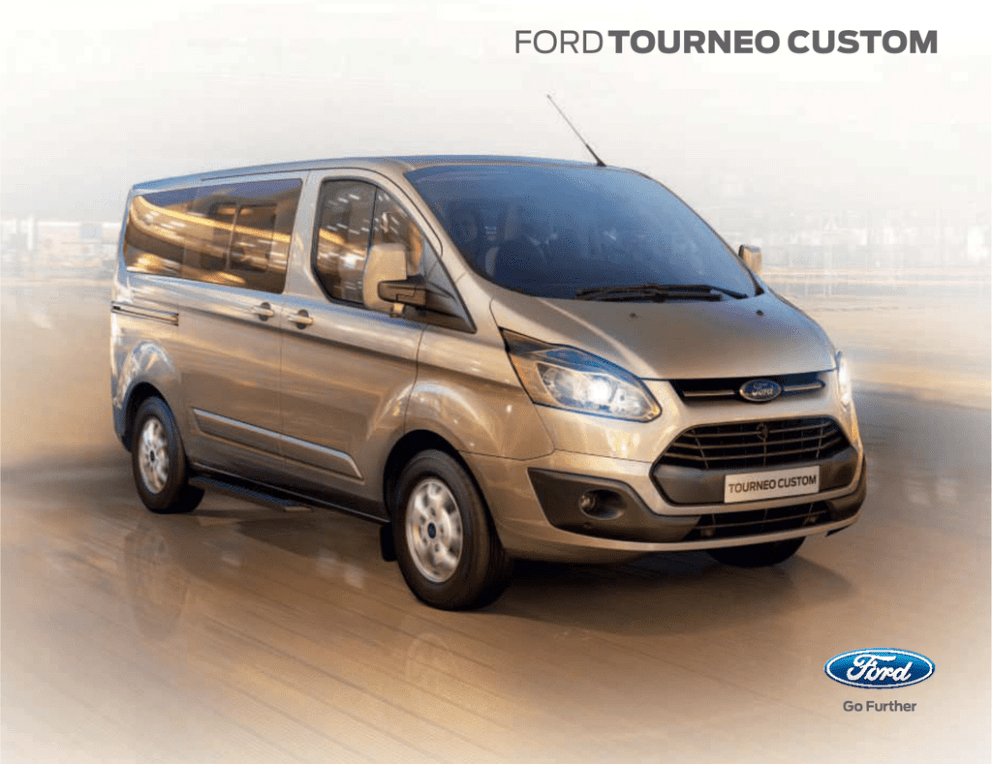 FORD TOURNEO CUSTOM Wizjonerski. Genialny. Wybitny. Każdy samochód nosi jego podpis. Otwórz dodatkowe treści w trybie online. Do skanowania kodów QR w niniejszej broszurze użyj odpowiedniej aplikacji w swoim smartfonie lub tablecie. Ty mówisz… Zapraszamy do korzystania z samochodowego systemu łączności „Re ad me ssa ge ” „Wh at's p layin g?” n” e ist r ll K a „C „Shuffle” nowej generacji. Aktywowany głosem system Ford SYNC z AppLink* umożliwia odtwarzanie muzyki, nawiązywanie i odbieranie połączeń telefonicznych , a nawet obsługę wybranych aplikacji zainstalowanych w Twoim smartfonie, a to wszystko za pomocą prostych komend głosowych. *Funkcja wymaga kompatybilnego telefonu komórkowego i nie jest dostępna we wszystkich językach europejskich. Najnowsze informacje znajdują się na lokalnej stronie internetowej Forda. (AppLink dostępny od połowy 2014.) 6 ” a n n a ih R t is t „Play ar ir s” h C l l a C „ „Call hom e” „C all of fic e” 7 …Ford SYNC odpowiada. System Ford SYNC z AppLink* reaguje na polecenia głosowe, dzięki czemu kierowca nie musi odrywać rąk od kierownicy i odwracać wzroku od drogi. System umożliwia nawiązywanie i odbieranie połączeń telefonicznych oraz odtwarzanie muzyki za pośrednictwem funkcji Bluetooth®. System ten automatycznie pobiera i zapamiętuje kontakty telefoniczne. Umożliwia również dostęp do muzyki zapisanej na napędzie USB. Natomiast funkcja wzywania pomocy* pozwala użytkownikom pojazdu, w razie wypadku, zadzwonić pod numer 112 i podać lokalizację pojazdu, w języku kraju, na terenie którego zdarzenie miało miejsce. *Wymaga kompatybilnego telefonu komórkowego, włączonego i sparowanego przez Bluetooth® i znajdującego się w samochodzie w chwili odpalenia jednej z poduszek powietrznych lub odcięcia pompy paliwa przez czujnik zderzeniowy . SYNC AppLink i funkcja wzywania pomocy nie są dostępne we wszystkich językach europejskich. Funkcja SYNC AppLink dostępna od lata 2014 r. Uwaga Logotyp i znaki graficzne Bluetooth® są zarejestrowanymi znakami towarowymi firmy Bluetooth SIG, Inc. i ich wykorzystanie przez Ford Motor Company i firmy związane z Ford Motor Company jest przedmiotem odpowiedniej licencji. Pozostałe znaki i nazwy towarowe są własnością ich zarejestrowanych właścicieli. Pokazany model to Ford Tourneo Custom Titanium. 9 Miejsce dla wszystkich. Zasiądź w obszernym i luksusowym wnętrzu Forda Tourneo Custom i ciesz się najnowszymi systemami umilającymi podróż. Nie tylko doskonale się go prowadzi, ale również przyjemnie się w nim siedzi – może zapewnić komfortowe warunki podróży nawet dziewięciu osobom*. Dzięki elastycznej konfiguracji siedzeń może również przekształcić się w jeden z najprzestronniejszych pojazdów na drodze, z obszerną dodatkową przestrzenią na bagaż i sprzęt. *Dostępny z ośmioma lub dziewięcioma fotelami do wyboru (wliczając siedzenie kierowcy). Pokazany model to Ford Tourneo Custom (L2) Titanium z lakierem metalizowanym Tectonic Silver (opcja). 11 Drzwi przesuwne i stopnie Stopnie zamontowane przy drzwiach przesuwnych po obu stronach pojazdu ułatwiają wsiadanie i wysiadanie, uzupełniając dodatkowo elegancką stylistykę Forda Tourneo Custom. (Standard) Miejsce na wszystko. Ford Tourneo Custom to bardzo pomysłowy minivan. Szeroko otwierane boczne drzwi przesuwne – największe w tej klasie Przyciemniane szyby i rolety przeciwsłoneczne tylnych okien pojazdów – oraz drzwi tyłu nadwozia z dużą szybą zapewniają łatwy dostęp Wbudowane rolety przeciwsłoneczne można podnieść, zapewniając pasażerom tylnych siedzeń ochronę przed słońcem. Przyciemniane szyby stanowią dodatkową ochronę i nadają ekskluzywny wygląd. (Opcja w wersjach Ambiente i Trend, standard w wersji Titanium) do eleganckiego i wygodnego wnętrza. Zaś liczne, dobrze pomyślane elementy wyposażenia, w tym rozmaite użyteczne schowki, zapewniają jeszcze więcej miejsca i bardziej wszechstronne wykorzystanie przestrzeni. Punkty mocowania fotelika dziecięcego ISOFIX Lodówka turystyczna Waeco+ Dla zwiększenia bezpieczeństwa środkowy fotel w drugim i trzecim rzędzie oraz lewy fotel w drugim rzędzie są wyposażone w punkty mocowania fotelika dziecięcego ISOFIX. (Standard) Wysokowydajne urządzenie schładza do temperatury minimalnej 1°C i podgrzewa do 65°C. Wbudowane złącze zasilania prądem zmiennym 230 V. Dostępne różne modele, również z mocowaniem ISOFIX. (Akcesoria) Wbudowany bagażnik dachowy Umożliwia przewóz przedmiotów o wadze do 130 kg. Nieużywany bagażnik można złożyć na równo z powierzchnią dachu, co poprawia aerodynamikę i pozwala oszczędzać paliwo. (Opcja) +Wyposażenie jest objęte osobną gwarancją producenta. Szczegóły na ostatniej stronie katalogu. 12 Doskonała widoczność. Automatyczne reflektory i światła do jazdy dziennej Mocne, wysoko zamontowane reflektory przednie, eleganckie światła tylne i zintegrowane światła do jazdy dziennej Forda Tourneo Custom zapewniają, że widzisz i jesteś doskonale widoczny w każdych warunkach. Automatyczne reflektory włączają się gdy natężenie światła zmiejszy się poniżej określonego poziomu, a funkcja opóźnionego wyłączania reflektorów pozwoli Ci bezpiecznie dotrzeć z samochodu do miejsca docelowego, oświetlając przejście , gdy jest ciemno. Halogenowe reflektory projekcyjne ze statycznymi światłami doświetlającymi zakręty Przy skręcie kierownicy o więcej niż 30 stopni, światła doświetlające zakręty oświetlają odpowiednią stronę drogi, poprawiając widoczność w nocy. Funkcja działa przy prędkości do 30km/h. (Standard) Pokazany model to Ford Tourneo Custom L1 Titanium z lakierem metalizowanym Midnight Sky (opcja). Wydajność do potęgi 3. 100 KM 2,2 Duratorq TDCi 125 KM 2,2 Duratorq TDCi 155 KM 2,2 Duratorq TDCi Silnik Duratorq TDCi 100 KM Znany ze swojej niezawodności, Wersja sil