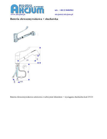 tel.: +48 22 8404961 www.akcjum.pl [email protected] Bateria zlewozmywakowa + słuchawka Bateria zlewozmywakowa sztorcowa z uchwytem lekarskim + wyciągana słuchawka kod 23121