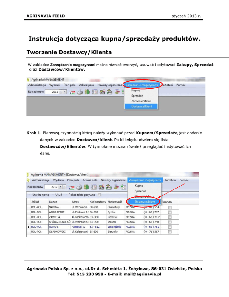 Agrinavia Field - tworzenie Dostawcy/Klienta