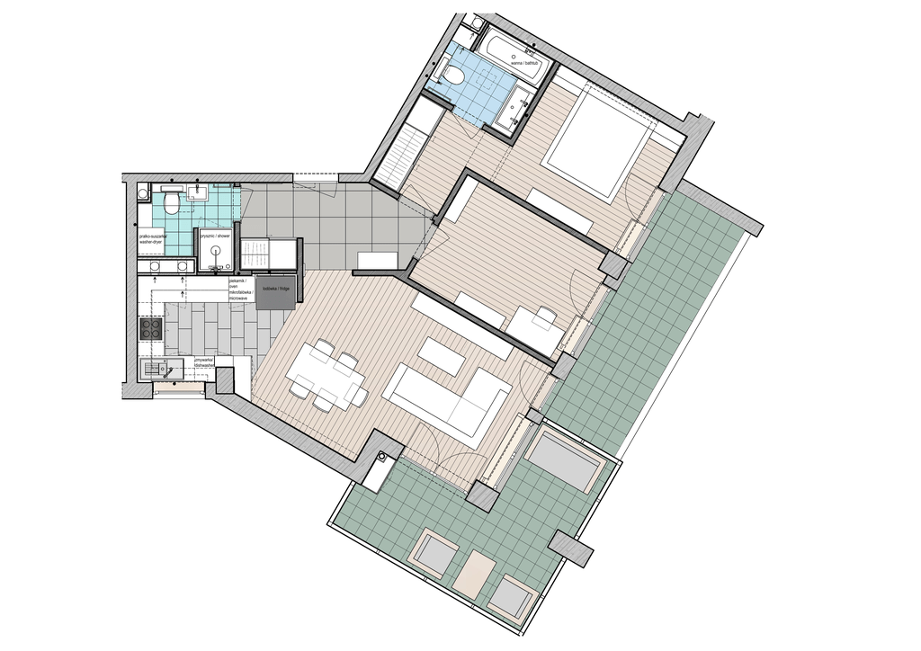 wanna / bathtub pralko-suszarka/ washer-dryer prysznic / shower piekarnik / oven microwave zmywarka/ dishwasher