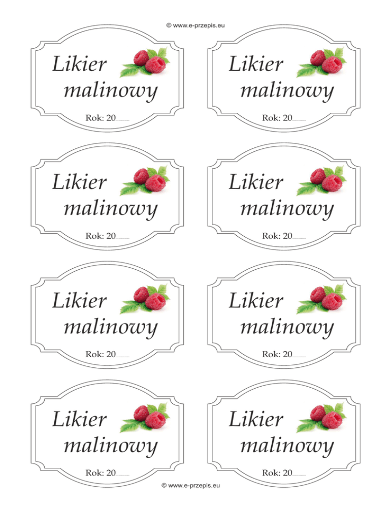 © www.e-przepis.eu Likier malinowy Likier malinowy Rok: 20.............. Rok: 20.............. Likier malinowy Likier malinowy Rok: 20.............. Rok: 20.............. Likier malinowy Likier malinowy Rok: 20.............. Rok: 20.............. Likier malinowy Likier malinowy Rok: 20.............. Rok: 20.............. © www.e-przepis.eu