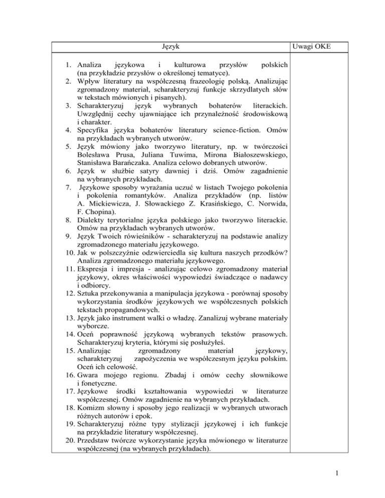 1 Język Uwagi OKE 1. Analiza językowa i kulturowa