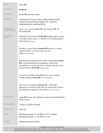 krem BB - Nowe Wyrazy - Uniwersytet Warszawski
