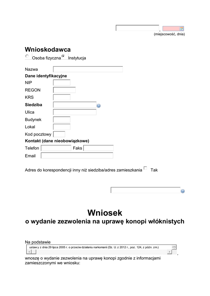Wniosek o wydanie zezwolenia na uprawę konopi włóknistych