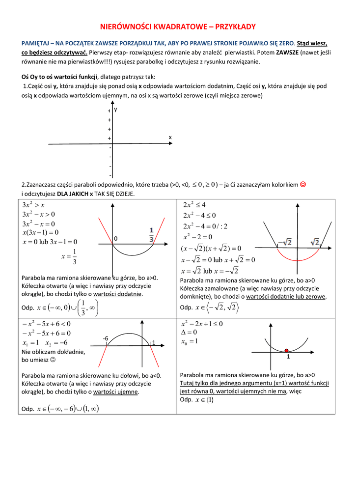 NIERÓWNOŚCI KWADRATOWE – PRZYKŁADY