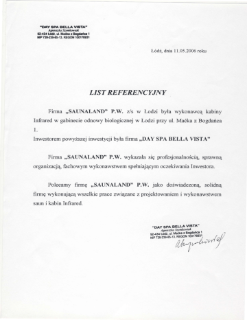 Firma ''SAUNALAN[D'' P.w. zls w Łodzi była wykonawcą kabiny