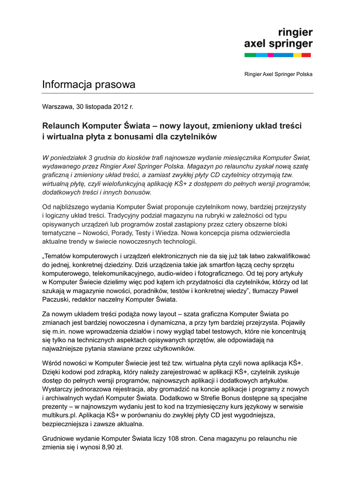 Informacja prasowa - Ringier Axel Springer Polska
