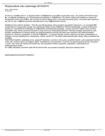 i ¿yczy³, aby nowy rok szkolny 2014/2015 by³ dla wszystkich rokiem sukcesów, satysfakcji i zadowolenia ze