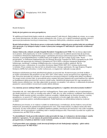 Przegląd prasy 18.01.2016r. Rynek Kolejowy Kolej nie jest gotowa