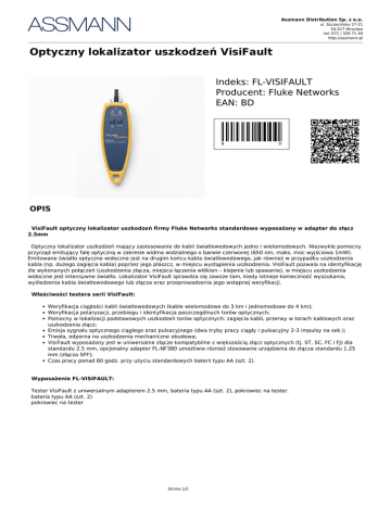 Karta produktu: Optyczny lokalizator uszkodzeń VisiFault