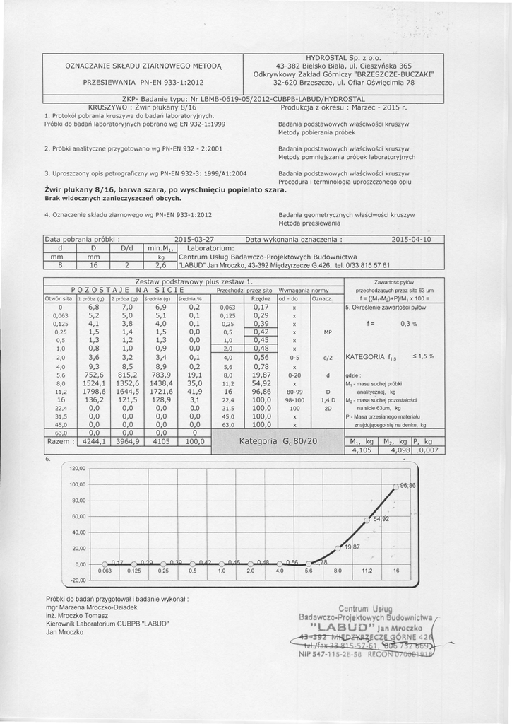 ZKP- Bada nie typu : N r LBM8-06 19-05/ ZOLZ-CUBPB-LABUD/HYDROSTAL