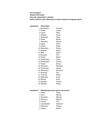 Lista Przyjętych Wydział Informatyki Kierunek: Automatyka i robotyka