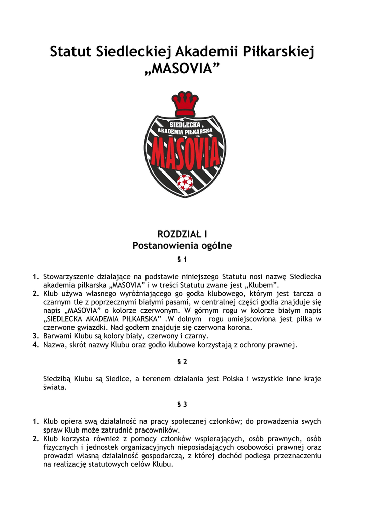 Statut Siedleckiej Akademii Piłkarskiej „MASOVIA”