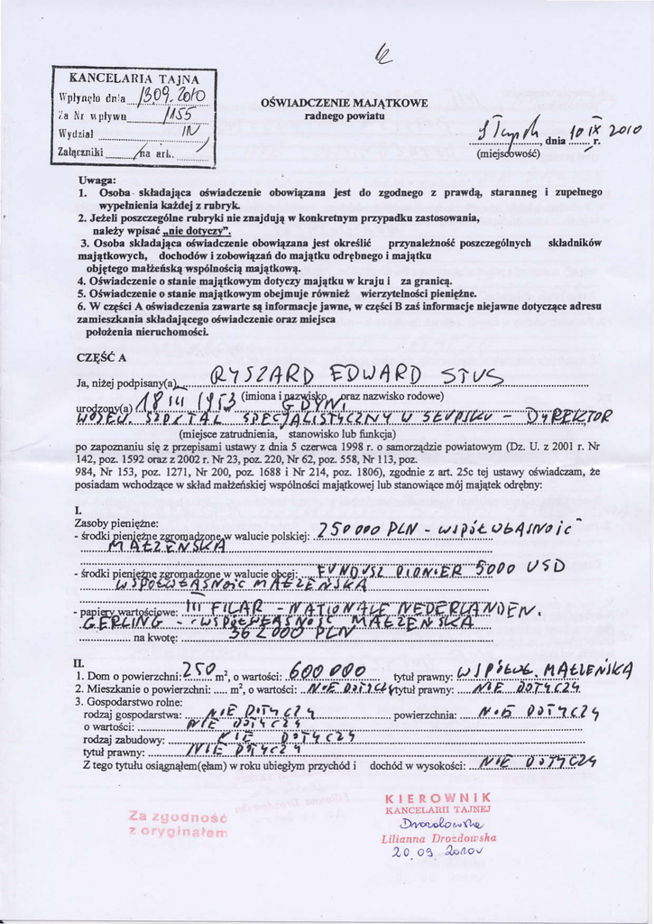 Oświadczenie majątkowe na zako ączenie III kadencji 2006-2010