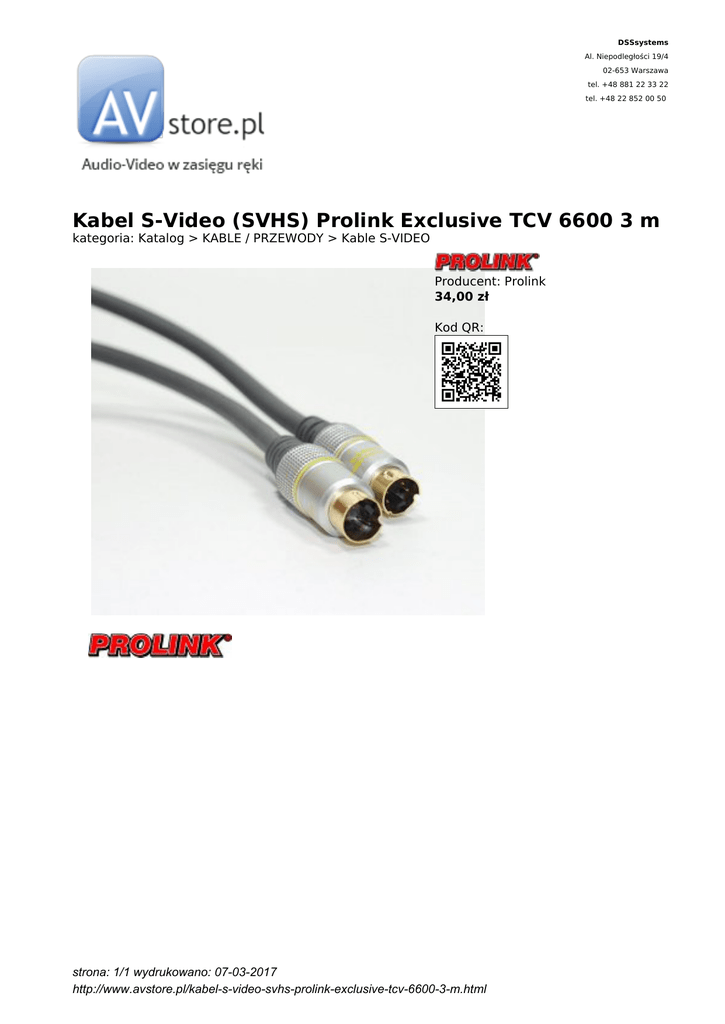 DSSsystems Al. Niepodległości 19/4 02-653 Warszawa tel. +48 881 22 33 22 tel. +48 22 852 00 50 Kabel S-Video (SVHS) Prolink Exclusive TCV 6600 3 m kategoria: Katalog > KABLE / PRZEWODY > Kable S-VIDEO Producent: Prolink 34,00 zł Kod QR: strona: 1/1 wydrukowano: 07-03-2017 http://www.avstore.pl/kabel-s-video-svhs-prolink-exclusive-tcv-6600-3-m.html