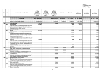 Załącznik Nr 4 do uchwały Nr X/114/2015 Rady Miasta Siedlce z dnia 29 czerwca 2015 roku Dział Rozdz. § Nazwa działu, rozdziału, paragrafu, podmiotu Dotacje podmiotowe na 2015 rok wg uchwały Nr III/18/2014 Rady Miasta Siedlce z dnia 19 grudnia 2014 roku z późń. zm. 1 2 3 4 5 OGÓŁEM 29 792 989,44 Dotacje przedmiotowe na 2015 rok wg uchwały Nr III/18/2014 Rady Miasta Siedlce z dnia 19 grudnia 2014 roku z późń. zm. Dotacje celowe na 2015 rok wg uchwały Nr III/18/2014 Rady Miasta Siedlce z dnia 19 grudnia 2014 roku z późń. zm. Zmniejszenie Zwiększenie Dotacje podmiotowe plan po zmianach Dotacje przedmiotowe plan po zmianach Dotacje celowe plan po zmianach 6 7 8 9 10 11 12 10 698 503,00 1 180 000,00 1 557 310,00 29 792 989,44 11 075 813,00 1 444 252,00 17 530 867,00 7 434 152,00 19 252,00 17 103 817,00 28 252,00 7 000,00 1 023 696,07 7 000,00 z tego: Dotacje w ramach zadań miejskich 801 Oświata i wychowanie 80101 Szkoły podstawiwe Dotacja celowa z budżetu na finansowanie lub dofinansowanie zadań zleconych do realizacji pozostałym jednostkom niezaliczanym do sektora finansów 2830 publicznych Katolicka Szkoła Podstawowa w Siedlcach - sfinansowanie z budżetu państwa kosztu zakupu podręczników, materiałów edukacyjnych lub materiałów ćwiczeniowych 80110 Gimnazja Dotacja celowa z budżetu na finansowanie lub dofinansowanie zadań zleconych do realizacji pozostałym jednostkom niezaliczanym do sektora finansów 2830 publicznych Katolickie Gimnazjum w Siedlcach - sfinansowanie z budżetu państwa kosztu zakupu podręczników, materiałów edukacyjnych lub materiałów ćwiczeniowych Gimnazjum z Oddzialami Przysposabiającymi do Pracy w Siedlcach sfinansowanie z budżetu państwa kosztu zakupu podręczników, materiałów edukacyjnych lub materiałów ćwiczeniowych Realizacja zadań wymagających stosowania specjalnej organizacji nauki i metod pracy dla dzieci imłodzieżyw szkołach podstawowych, gimnazjach, liceach ogólnokształcących, liceach profilowanych i szkołach zawodowych oraz szkołach artystycznych 80150 Dotacja celowa z budżetu na finansowanie lub dofinansowanie zadań zleconych do realizacji pozostałym jednostkom niezaliczanym do sektora finansów 2830 publicznych Niepubliczna Szkoła Podstawowa "Żółty Latawiec" w Siedlcach - sfinansowanie z budżetu państwa kosztu zakupu podręczników, materiałów edukacyjnych lub materiałów ćwiczeniowych Katolicka Szkoła Podstawowa w Siedlcach - sfinansowanie z budżetu państwa kosztu zakupu podręczników, materiałów edukacyjnych lub materiałów ćwiczeniowych 852 17 530 867,00 7 169 900,00 17 103 817,00 9 000,00 1 023 696,07 7 000,00 900 11 416,00 203 251,93 Pozostala działalność Dotacja celowa z budżetu na finansowanie lub dofinansowanie zadań zleconych 2820 do realizacji stowarzyszeniom Stowarzyszenie Pomocy Społecznej, Rehabilitacji i Resocjalizacji im. H. CH. Kofoeda - zapewnienie gorącego posiłku osobom potrzebującym 90005 Gospodarka ściekowa i ochrona wód Dotacja celowa z budżetu na finansowanie lub dofinansowanie kosztów realizacji inwestycji i zakupów inwestycyjnych pozostałych jednostek niezaliczonych do 6230 sektora finansów publicznych Dotacja do udzielenia w 2015 roku z przeznaczeniem na realizację inwestycji z zakresu gospodarki ściekowej Ochrona powietrza atmosferycznego i klimatu Dotacja celowa z budżetu na finansowanie lub dofinansowanie kosztów realizacji inwestycji i zakupów inwestycyjnych pozostałych jednostek niezaliczonych do 6230 sektora finansów publicznych Dotacja do udzielenia w 2015 roku z przeznaczeniem na realizację urządzeń związanych z ochroną powietrza 37 7 000,00 1 637 951,00 11 416,00 11 416,00 11 416,00 3 000,00 3 000,00 8 416,00 8 416,00 836,00 Gospodarka komunalna i ochrona środowiska 90001 7 000,00 7 000,00 1 637 951,00 Pomoc społeczna Zasiłki i pomoc w naturze oraz składki na ubezpieczenia emerytalne 85214 i rentowe Dotacja celowa z budżetu na finansowanie lub dofinansowanie zadań zleconych 2820 do realizacji stowarzyszeniom Stowarzyszenie Pomocy Społecznej, Rehabilitacji i Resocjalizacji im. H. CH. Kofoeda - zapewnienie gorącego posiłku osobom potrzebującym 85295 1 180 000,00 203 251,93 836,00 836,00 836,00 436,00 436,00 400,00 400,00 180 000,00 1 816 500,00 1 816 500,00 180 000,00 360 000,00 180 000,00 180 000,00 360 000,00 180 000,00 180 000,00 180 000,00 180 000,00 316 500,00 180 000,00 496 500,00 316 500,00 180 000,00 496 500,00 180 000,00 180 000,00 100 000,00 45 000,00 145 000,00 22 000,00 10 000,00 32 000,00 22 000,00 10 000,00 32 000,00 22 000,00 10 000,00 32 000,00 68 000,00 35 000,00 103 000,00 68 000,00 35 000,00 103 000,00 68 000,00 35 000,00 103 000,00 Dział Rozdz. § 1 2 3 926 Nazwa działu, rozdziału, paragrafu, podmiotu Dotacje podmiotowe na 2015 rok wg uchwały Nr III/18/2014 Rady Miasta Siedlce z dnia 19 grudnia 2014 roku z późń. zm. Dotacje przedmiotowe na 2015 rok wg uchwały Nr III/18/2014 Rady Miasta Siedlce z dnia 19 grudnia 2014 roku z późń. zm. Dotacje celowe na 2015 rok wg uchwały Nr III/18/2014 Rady Miasta Siedlce z dnia 19 grudnia 2014 roku z późń. zm. Zmniejszenie Zwiększenie Dotacje podmiotowe plan po zmianach Dotacje przedmiotowe plan po zmianach Dotacje celowe plan po zmianach 4 5 6 7 8 9 10 11 12 Kultura fizyczna 92695 Pozostala działalność Dotacja celowa z budżetu na finansowanie lub dofinansowanie zadań zleconych 2820 do realizacji stowarzyszeniom Dotacja do udzielenia w 2015 roku z przeznaczeniem na szkolenie i współzawodnictwo sportowe (piłka nożna, koszykówka kobiet i mężczyzn, lekka atletyka, piłka siatkowa mężczyzn i kobiet, rugby, tenis stołowy, narciarstwo biegowe, tenis oraz na pozostałe dyscypliny sportu) Miejski Klub Sportowy "Pogoń" Siedlce - szkolenie i współzawodnictwo sportowe - rugby Miejski Klub Sportowy "Pogoń" Siedlce - szkolenie i współzawodnictwo sportowe - tenis stołowy Uczniowski Klub Sportowy "RAWA" Siedlce - szkolenie i wsp