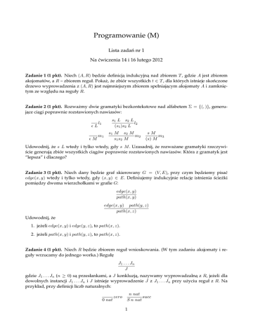 Zadanie 1 (1 pkt). Niech (A, R) b˛edzie definicja˛ indukcyjna˛ nad zbiorem T , gdzie A jest zbiorem