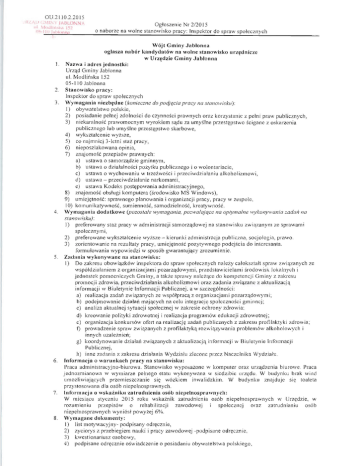 o naborze na wolne stanowisko pracy: Inspektor do spraw społeczn yc h