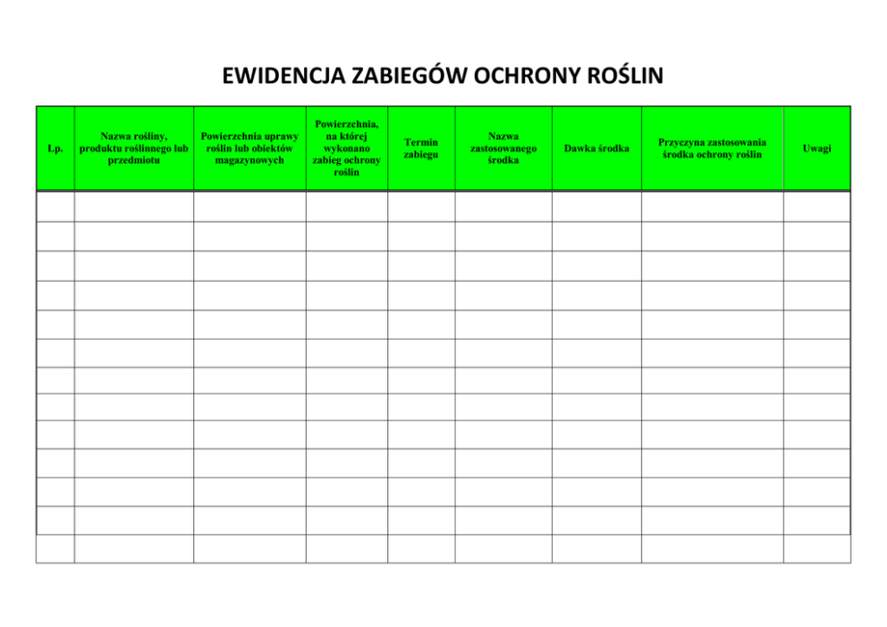 ewidencja zabiegów ochrony roślin