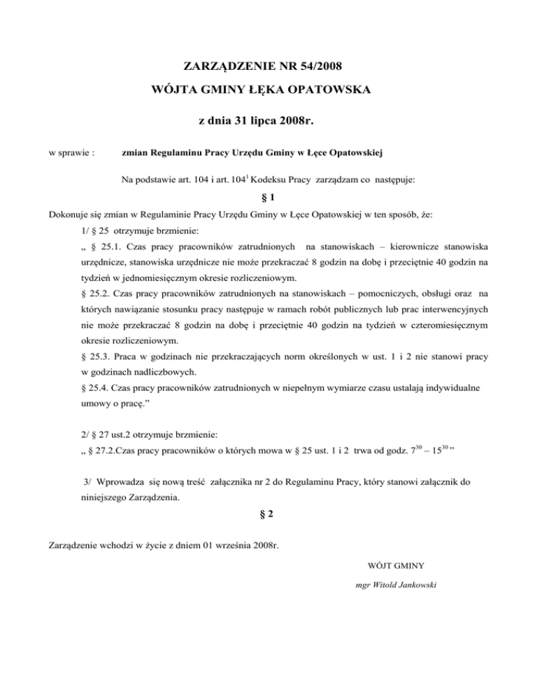 ZARZĄDZENIE NR 54/2008 WÓJTA GMINY ŁĘKA OPATOWSKA z