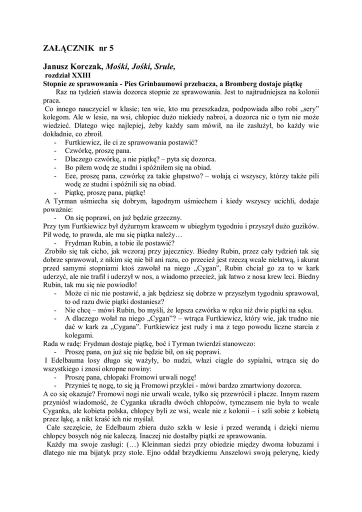 ZAŁĄCZNIK nr 5 Janusz Korczak, Mośki, Jośki, Srule,
