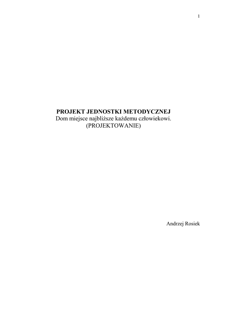 1 PROJEKT JEDNOSTKI METODYCZNEJ Dom miejsce najbliŜsze kaŜdemu człowiekowi. (PROJEKTOWANIE) Andrzej Rosiek 2 SPIS TREŚCI Wstęp................................................................................................................................... 3 I. Istota edukacji ogólnotechnicznej 1. Charakterystyka kształcenia technicznego w szkole ogólnokształcącej ........................ 3 2. Wypisy z podstawy programowej dla szkół podstawowych .......................................... 4 II. Projekt dydaktyczny jednostki metodycznej kaŜdemu człowiekowi (projektowanie) Dom miejsce najbliŜsze 1. Charakterystyka jednostki metodycznej Dom miejsce najbliŜsze kaŜdemu człowiekowi (projektowanie)............................................................................... 6 2. Propozycje rozwiązań metodycznych konspekt lekcji - Poznajemy instalacje potrzebne w naszych domach.............................................................................................. 9 Podsumowanie .................................................................................................................... 15 Bibliografia.......................................................................................................................... 15 3 Wstęp Prezentowane opracowanie dydaktyczne jest przeznaczone jako narzędzie pracy dla nauczyciela techniki w szkole podstawowej. MoŜe teŜ dostarczyć nauczycielom innych przedmiotów informacji o zagadnieniach realizowanych na zajęciach techniki. Jest to zbiór informacji pochodzących z róŜnych źródeł uzupełnionych o własne obserwacje i analizy materiałów źródłowych. Pozwoli zaprezentować uczniom nowoczesne rozwiązania w dziedzinie projektowania domów i ich wyposaŜenia w urządzenia ułatwiające codzienne Ŝycie. Omawiana tematyka jest okazją do wprowadzenia zagadnień zawodoznawczych, które doskonale nadają się do realizacji metodą projektu przy współpracy z wychowawcą klasy. Zadania do samodzielnego rozwiązania opracowane przez uczniów mogą być prezentowane na forum klasy. Z przygotowanych przez uczniów prac moŜna wykonać album zawodoznawczy, a następnie wykorzystać go na lekcjach wychowawczych. Tematykę zawodoznawczą warto poszerzyć o inne zawody, niekoniecznie związane z budownictwem, zwłaszcza na wyraźne Ŝyczenie ucznia. Asortyment urządzeń gospodarstwa domowego zaleŜy od zasobności środowiska, w którym uczeń funkcjonuje. Omawiając tę tematykę, nauczyciel powinien tak prowadzić dyskusję, aby Ŝaden uczeń nie poczuł się niezręcznie, poniewaŜ jego rodzice nie posiadają np. skomplikowanego robota czy pralki automatycznej. Warto zorganizować wycieczkę do sklepu ze sprzętem gospodarstwa domowego, w którym sprzedawca zaprezentuje najchętniej kupowane prze klientów urządzenia. Po realizacji tych zagadnień uczeń powinien mieć świadomość, Ŝe sprzęt AGD kupuje się na lata, więc naleŜy przemyśleć jego wybór i zakup. Robiąc zakupy naleŜy zwrócić uwagą na jakość kupowanego produktu, aby uniknąć zbędnego wydawania pieniędzy i rozczarowań z powodu zakupu wadliwego produktu. Realizując tę jednostkę metodyczną warto skorzystać z internetowych stron firm prezentujących domy, ogrody przydomowe, dokumentację techniczną domów oraz urządzenia gospodarstwa domowego. I. ISTOTA EDUKACJI OGÓLNOTECHNICZNEJ 1. Charakterystyka kształcenia technicznego w szkole ogólnokształcącej Zadaniem szkoły jest przygotowanie ucznia do Ŝycia we współczesnym świecie. Kontakt dziecka w wieku przedszkolnym i szkolnym z techniką wpływa na jego osobowość i decyduje o jego przyszłym stosunku do świata techniki. Realizacja treści z wychowania komunikacyjnego przyczyni się do ukształtowania prawidłowej postawy młodego uczestnika ruchu drogowego. Zdobywane wiadomości i umiejętności z zakresu techniki nauczą myślenia technicznego, planowania, projektowania i organizacji pracy oraz rozbudzą chęć poznawania najnowszych zdobyczy techniki. Wobec tak postawionych zadań nauczyciel jest zobowiązany do: 1. wprowadzenie uczniów w świat techniki, 2. przekazanie uczniom podstawowych wiadomości i wykształcenie umiejętności, które są przydatne w Ŝyciu codziennym, 4 3. rozbudzenie u uczniów dociekliwości poznawczej dotyczącej techniki i społecznych skutków jej rozwoju, 4. wdraŜanie uczniów do racjonalnego i bezpiecznego korzystania z róŜnego rodzaju wytworów techniki oraz skutecznego komunikowania się, 5. uświadomienie uczniom odpowiedzialności za bezpieczeństwo własne i innych uczestników ruchu drogowego. Technika w Ŝyciu człowieka jest nieodłączną towarzyszką. Rozwój społeczeństw w przeszłości jak i obecnie warunkuje poziom rozwoju techniki oraz posiadanie przez nie nowoczesnych technologii. Te dwa zdania opisują znaczenie tego przedmiotu pośród innych nauczanych w szkole. 2. Wypisy z podstawy programowej Podstawa programowa kształcenia ogólnego dla szkół podstawowych zawarta w rozporządzeniu Ministra Edukacji Narodowej z dnia 23 sierpnia 2007 r. zmieniającym rozporządzenie w sprawie podstawy programowej wychowania przedszkolnego oraz kształcenia ogólnego w poszczególnych typach szkół. (Dz. U. z dnia 31 sierpnia 2007r Nr 157, poz.1100). Nadrzędnym celem działań edukacyjnych szkoły jest wszechstronny rozwój ucznia. Edukacja szkolna polega na harmonijnym realizowaniu przez nauczycieli zadań w zakresie nauczania, kształcenia umiejętności i wychowania. Zadania te tworzą wzajemnie uzupełniające się i równowaŜne wymiary pracy kaŜdego nauczyciela. Szkoła w zakresie nauczania, co stanowi jej zadanie specyficzne, zapewnia uczniom w szczególności: 1) naukę poprawnego i swobodnego wypowiadania się, pisania i czytania ze zrozumieniem, w tym w językach obcych, 2) poznawanie wymaganych pojęć i zdobywanie rzetelnej wiedzy na poziomie umoŜliwiającym co najmniej kontynuację nauki na następnym etapie 
