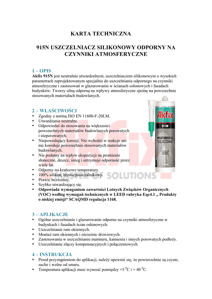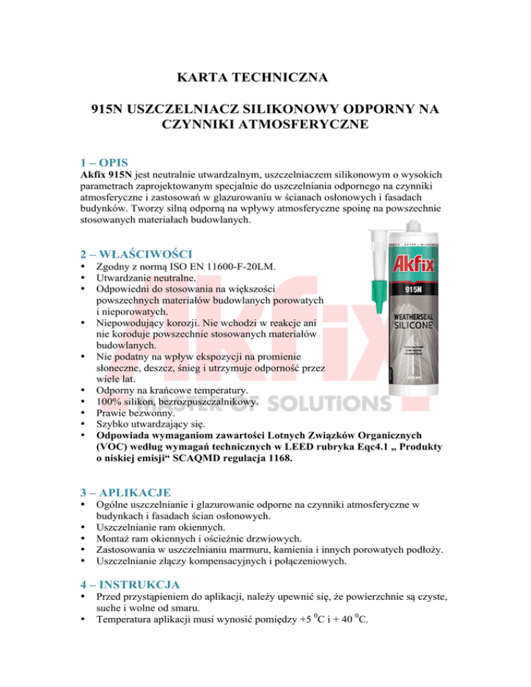 karta techniczna 915n uszczelniacz silikonowy odporny na czynniki