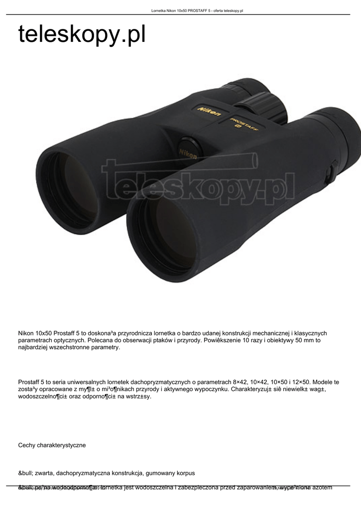 Lornetka Nikon 10x50 PROSTAFF 5 - oferta teleskopy.pl