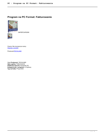 PC : Program na PC Format: Fakturowanie Program na PC Format: Fakturowanie GMTEPCAP0290 Ocena: Nie ma jeszcze oceny Zapytaj o produkt ProducentTECHLAND Opis Producent: TECHLAND Opis ogólny: Fakturowanie Platforma (sprz?t): Komputer PC Kategoria gry / programu: U?ytkowy Typ no?nika: P?yta DVD 1 / 1 Powered by TCPDF (www.tcpdf.org)