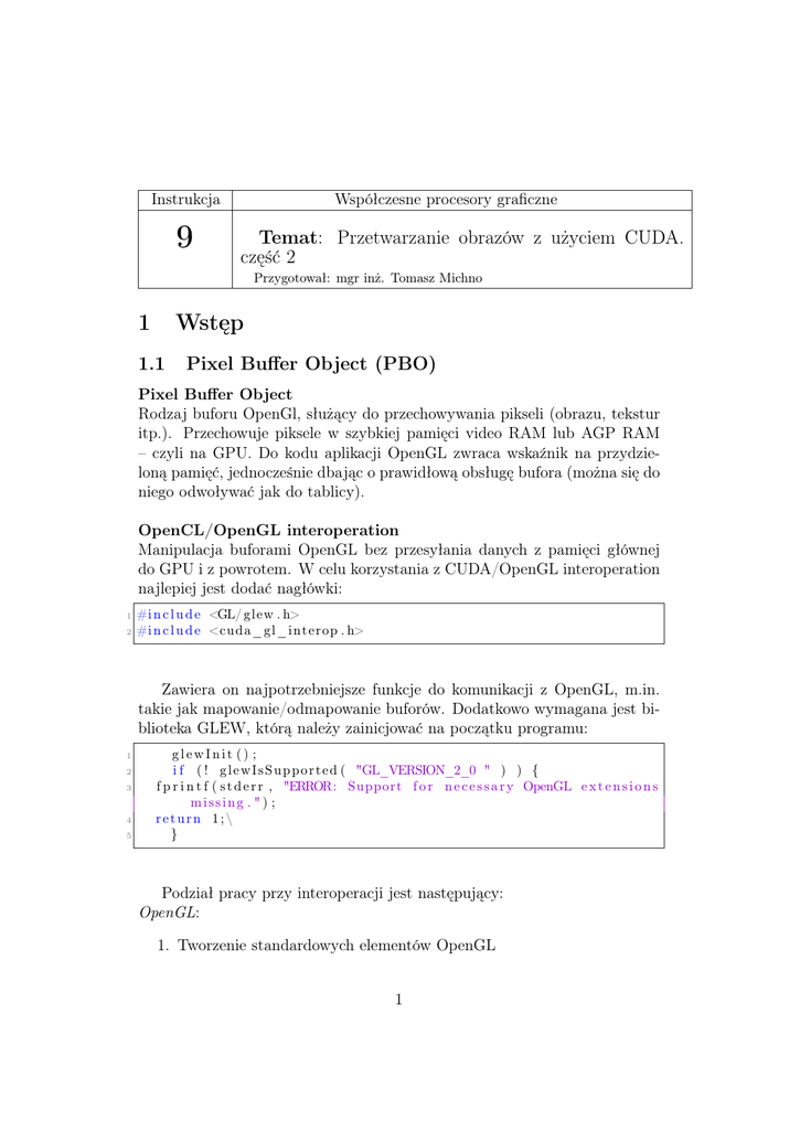 do GPU i z powrotem. W celu korzystania z CUDA/OpenGL interoperation
