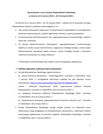 Sprawozdanie z prac Zarządu Województwa Opolskiego w okresie