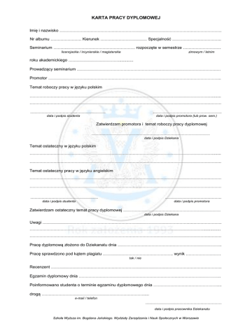 karta pracy dyplomowej - Warszawa