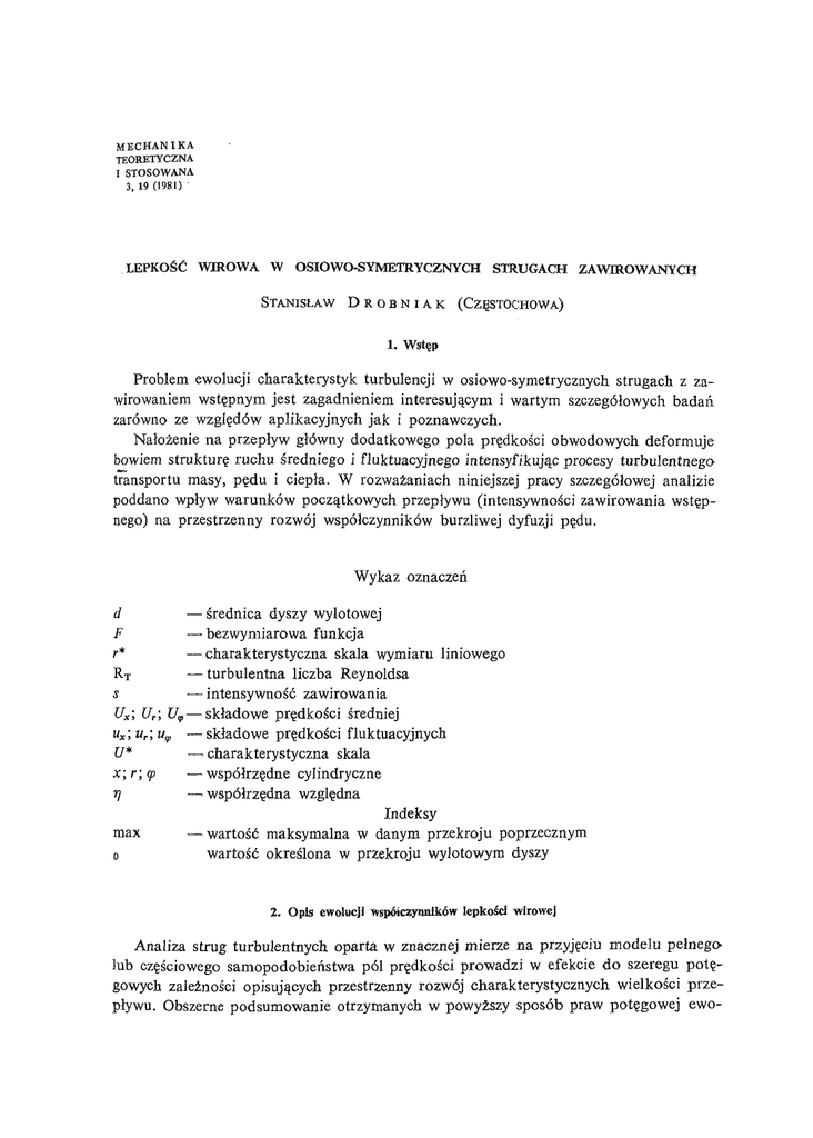 LEPKOŚĆ WIROWA W OSIOWO- SYMETRYCZN YCH STANISŁAW D R O B N I A K STRU G ACH ZAWIROWAN YCH
