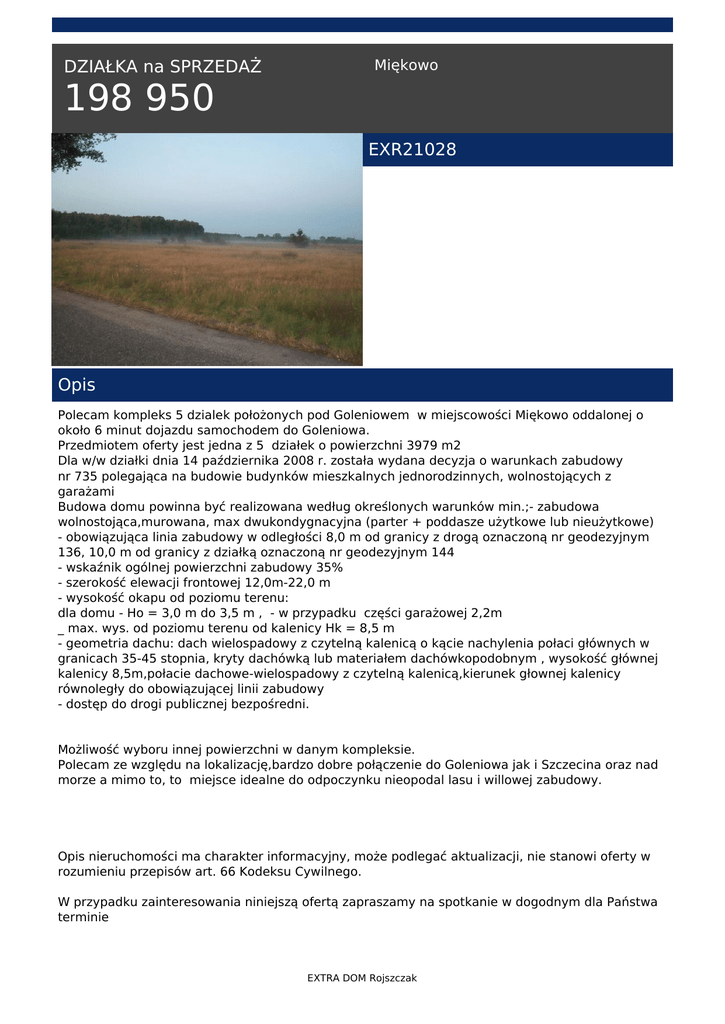DZIAŁKA na SPRZEDAŻ EXR21028 Opis