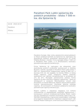 Panattoni Park Lublin spiżarnią dla polskich produktów – blisko 7 500 m kw. dla Spiżarnia SJ 16:26 2015-10-27 Panattoni Přílohy: Panattoni Europe, lider rynku powierzchni przemysłowych w Polsce podpisał kontrakt ze Spiżarnia SJ, zajmującą się dystrybucją polskich produktów spożywczych na rynek Wielkiej Brytanii i Irlandii. Firma wynajęła blisko 7 500 m2 w Panattoni Park Lublin, a w sfinalizowaniu kontraktu pośredniczyła agencja doradcza JLL. Firma Spiżarnia SJ, zajmująca się eksportem oraz dystrybucją polskich produktów spożywczych w Wielkiej Brytanii i Irlandii, wynajęła w Panattoni Park Lublin blisko 7 500 m2. Powierzchnia magazynowa zajmie 6 800 m2, a biurowa 570 m2. Ze względu na branżę FMCG, w której działa najemca, część magazynu będzie zawierać wydzielone trzy zakresy temperaturowe w przedziale od 2°C do 8°C. Wynajęta powierzchnia posłuży firmie Spiżarnia SJ jako centralny magazyn logistyczny - obok już istniejących w Londynie, Manchesterze, Lincoln oraz Portadown w Irlandii Północnej. Będzie równocześnie pełnić funkcję reprezentacyjną, stanowiąc główną siedzibę najemcy. W rozmowach i w finalnym podpisaniu kontraktu pośredniczyła agencja doradcza JLL. Region Lublina z populacją sięgającą 2,2 miliona mieszkańców w województwie pozostaje logistycznym i biznesowym centrum środkowo-wschodniej Polski. Lublin zaś jest największym miastem wschodniej części kraju z ok. 350 000 mieszkańców z ogromnym potencjałem i strategią przyciągania bezpośrednich inwestycji zagranicznych. Jak twierdzi Robert Dobrzycki, Chief Executive Officer Europe z 1/2 Panattoni Europe: "Silna strategia przyciągania inwestycji zagranicznych nie ogranicza lokalnych firm, które działają globalnie, czego przykładem jest Spiżarnia SJ. Jesteśmy dumni, że nasze nowoczesne powierzchnie magazynowej wspierają te firmy w ich ekspansji i w aktywności biznesowej opartej o najwyższe standardy". Potrzebę powstania powierzchni magazynowej klasy "A" potwierdza również najemca: "Specjalizujemy się w dystrybucji polskich produktów spożywczych na rynku brytyjskim, a zapewnienie konkurencyjnych cen oferowanych przez nas towarów jest możliwe dzięki realizacji zamówień bezpośrednio z Polski. Nowoczesna powierzchnia magazynowa klasy A, do której dotychczas nie mieliśmy dostępu w Lublinie, wzmocni nas w realizacji misji nieustannego wspierania rozwoju naszych Klientów poprzez tworzenie dla nich konkurencyjnych rynkowo rozwiązań, w oparciu o partnerstwo handlowe oraz poszanowanie zasad rzetelności kupieckiej. Z pewnością też przyczyni się do rozwoju naszej firmy" - powiedział Karol Wroński, współwłaściciel firmy Spiżarnia SJ. Mateusz Iłowiecki, Starszy Konsultant w Dziale Powierzchni Magazynowo - Przemysłowych JLL, komentuje: "Spiżarnia chciała przenieść się z budynku klasy B do nowoczesnego obiektu i objąć większą powierzchnię o wyższym standardzie, w pełni dostosowaną do specyfiki działalności dynamicznie rozwijającej się firmy zajmującej się dystrybucją produktów spożywczych na rynku brytyjskim. Podpisanie umowy najmu w Panattoni Park Lublin budowanym na zasadach spekulacyjnych to również bardzo pozytywny sygnał dla rynku lubelskiego, który w ostatnim czasie przyciąga uwagę zarówno najemców, jak i deweloperów realizujących wysokiej jakości projekty magazynowe z atrakcyjnymi stawkami najmu. Panattoni Park Lublin to nowoczesny kompleks o charakterze produkcyjno-technologicznym, położony w pobliżu dróg ekspresowych S12, S17 i S19, na terenie podstrefy Lublin, Specjalnej Strefy Ekonomicznej EURO-PARK Mielec. Park składa się z jednego obiektu o planowanej powierzchni 72 000 m2 a przedsiębiorcy, którzy zdecydują się na inwestycje w ramach parku, mogą korzystać z pomocy publicznej, stanowiącej pomoc regionalną w postaci zwolnienia z podatku dochodowego od osób fizycznych i prawnych (PIT/CIT), udzielanej z tytułu zarówno poniesionych nakładów inwestycyjnych, jak i tworzenia nowych miejsc pracy. 2/2