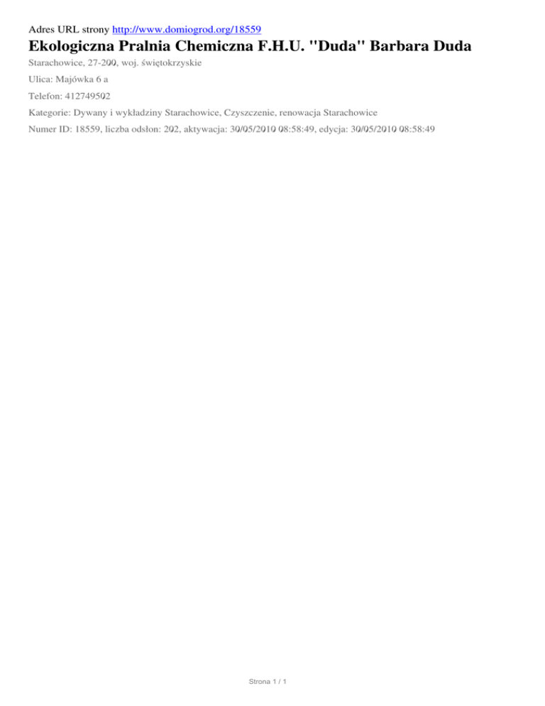 Ekologiczna Pralnia Chemiczna F.H.U. "Duda" Barbara Duda
