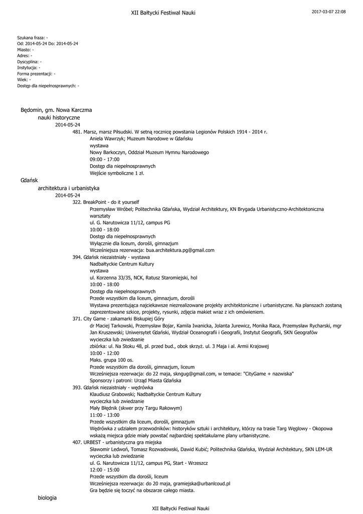 24 maja (sobota) - Bałtycki Festiwal Nauki