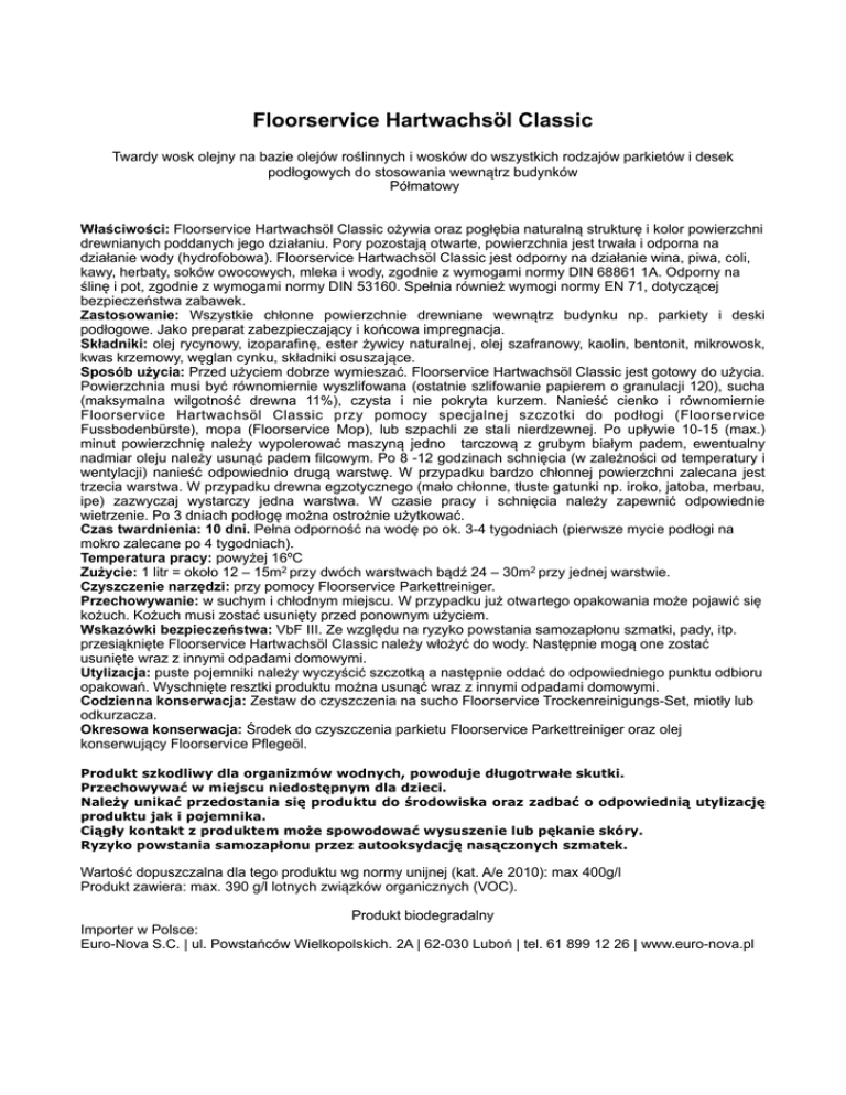Karta techniczna FLS Hartwachsöl Classic, ver. 26.05.2015