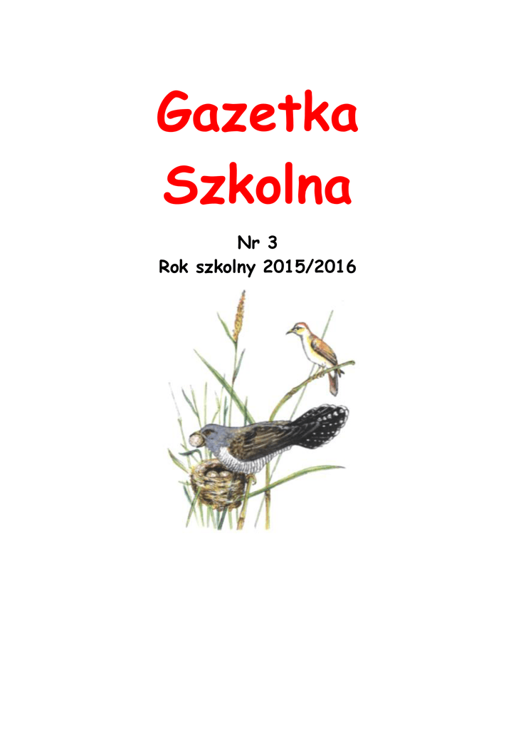 Gazetka Szkolna Nr 3 Rok szkolny 2015/2016 Gazetka redagowana przez uczniów klas trzecich w składzie: Matrta Chrobok, Natalia Badura,Paulina Przybyła, Klaudia Muskietorz, Nikola Bomba, Wiktoria Dziurska, Wiktoria Mogieła, Weronika Kołodziej, Maja Tomczak, Paweł Szołtysik, Sandra Chamerska, Magdalena Borkowska, Natalia Kasperczyk Aktualności No i stało się. Nareszcie doczekaliśmy się upragnionych ferii zimowych. Każdy z nas ma własne plany i pomysły na ich spędzenie, ale najważniejsze, aby pamiętać o bezpieczeństwie podczas zimowych zabaw. Zespół redakcyjny pragnie wam podrzucić garść dobrych rad i przestróg, o których warto pamiętać, kiedy już założymy łyżwy lub narty. Niestety, najpierw musimy poczekać na ŚNIEG ! Zanim rzucisz się w wir zimowego szaleństwa, pamiętaj: 1. 2. 3. 4. 5. 6. 7. 8. Ubieraj się ciepło. Nie ślizgaj się po zamarzniętych stawach i rzekach. Wybieraj sztuczne lodowiska. Nie baw się w niebezpiecznych miejscach. Wracaj do domu przed zmrokiem. Pij ciepłe napoje. Pomóż ptakom i bezdomnym zwierzętom przetrwać zimę. Zawsze mów rodzicom, gdzie idzesz się bawić. Życzymy wszystkim miłych, zdrowych i wesołych ferii, aby spadło duuuuuuuuuużo śniegu, z którego ulepicie duuuuuuuuuużo bałwanów. Wspaniałych ferii!!! Zespół redakcyjny gazetki szkolnej. Humor Słyszałem w radiu, że jutro ma być 2 razy zimniej niż dzisiaj. Nie mogę się już doczekać, co z tego wyniknie. Dziś jest 0 stopni... Sekretarka mówi do zapracowanego biznesmana: - Panie prezesie, zima przyszła! - Nie mam teraz czasu, powiedz jej żeby przyszła jutro! A najlepiej niech wcześniej zadzwoni, to umówisz ją na konkretną godzinę. - Kto to jest prawdziwy narciarz? - Człowiek, którego stać na luksus połamania nóg w bardzo znanej miejscowości górskiej, przy pomocy bajecznie drogiego sprzętu. Pisać każdy może, czyli Kącik Młodego Twórcy "Zimowy rap" Siostro! Bracie! Teraz są ferie! Możesz wygrać zimową loterię. Tylko uważaj na zamarznięte kałuże, możesz się pośliznąć, niebezpieczeństwo jest duże. Ubieraj się też ciepło, bo na dworze nie jest piekło. Najlepiej siedź w domu i się nie poruszaj! Nie ... żartuję, idź i zdrowo się rozruszaj. Wiktoria Dziurska 3c