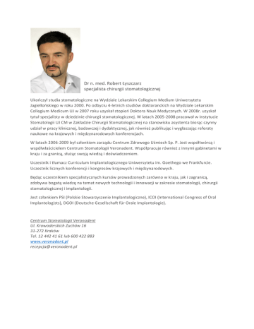 Dr n. med. Robert Łyszczarz specjalista chirurgii stomatologicznej