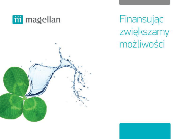 Konferencja Profesjonalny Inwestor Zakopane, listopad 2014 Agenda • • • • • Grupa Magellan Spółka Magellan na GPW Wyniki finansowe Hiszpania – nowy rynek Magellana Perspektywy rozwoju 3 Grupa Magellan - lider rynku usług finansowania sektora ochrony zdrowia • Magellan - najważniejszy partner szpitali w finansowaniu bieżącej działalności oraz dostawy artykułów i usług • Magellan – innowacyjny partner w finansowaniu samorządów • Magellan – pionier nowoczesnych rozwiązań finansowych kreujących rynek • Magellan - lider w wyznaczaniu trendów rynkowych dzięki unikalnym autorskim produktom finansowym • Magellan – działalność na czterech rynkach europejskich: Polska, Czechy, Słowacja i od 20.10.2014 w Hiszpanii Struktura Grupy Kapitałowej Magellan Magellan S.A. Grupa Magellan Magellan Česká republika s.r.o.(Czechy) MEDFinance S.A. (finansowanie inwestycji) Magellan Slovakia s.r.o. (Słowacja) Kancelaria Prawnicza P. Pszczółkowski i Wspólnik Kancelaria Prawnicza Karnowski i Wspólnik spółki stowarzyszone 4 Grupa Magellan w liczbach Magellan to niekwestionowany lider rynku finansowania ochrony zdrowia oraz ekspert w obszarze oceny kondycji finansowej szpitali 2 174 umów zawartych w 13Q’14 Współpraca z 435 kontrahentami; obsługa ponad 600 podmiotów medycznych 1 230 mln PLN dostępnego finansowania zewnętrznego 1 459 mln PLN wartość umów zawartych w 1-3Q’14 1 294 mln PLN portfel aktywów finansowych na 30.09.2014 306 mln PLN wartość kapitałów własnych na 30.09.2014 *Giełdowa Spółka Roku to najstarszy i najbardziej prestiżowy ranking na rynku. Redakcja ,,Pulsu Biznesu” organizuje go z TNS Polska już od 15 lat. Analitycy, maklerzy i doradcy oceniają m.in. perspektywy rozwoju firm, kompetencje zarządu oraz ich relacje z inwestorami. Więcej informacji o rankingu na gsr.pb.pl Magellan zdobył 3. miejsce w kategorii „kompetencje zarządu” w rankingu Giełdowa Spółka Roku 2013*. Bardzo dobrze ocenione zostało przede wszystkim zarządzanie przepływami finansowymi i perspektywiczność zarządu. W ogólnej klasyfikacji rankingu Magellan zajął 7. miejsce. 5 Grupa Magellan – sprawdzony model biznesu Dla samorządów Finansując zwiększamy możliwości. Dopasowujemy rozwiązania do potrzeb. Myślimy innowacyjnie. Dla szpitali Pomagamy zachować równowagę finansową. Rozumiemy potrzeby szpitali. Wspieramy bieżącą działalność. Dla dostawców do szpitali Wspieramy płynność finansową. Zabezpieczamy terminowość. Dostarczamy kapitał obrotowy. 6 2012-01-02 2012-01-19 2012-02-06 2012-02-22 2012-03-09 2012-03-27 2012-04-16 2012-05-04 2012-05-22 2012-06-08 2012-06-26 2012-07-12 2012-07-31 2012-08-17 2012-09-04 2012-09-20 2012-10-08 2012-10-24 2012-11-12 2012-11-28 2012-12-14 2013-01-08 2013-01-24 2013-02-11 2013-02-27 2013-03-15 2013-04-04 2013-04-23 2013-05-13 2013-05-29 2013-06-17 2013-07-03 2013-07-19 2013-08-06 2013-08-23 2013-09-10 2013-09-26 2013-10-14 2013-10-30 2013-11-19 2013-12-05 2013-12-23 2014-01-16 2014-02-03 2014-02-19 2014-03-07 2014-03-25 2014-04-10 2014-04-30 2014-05-19 2014-06-04 2014-06-23 2014-07-09 2014-07-25 2014-08-12 2014-08-29 2014-09-16 2014-10-02 2014-10-20 2014-11-05 Spółka Magellan lider wzrostu na GPW Magellan - atrakcyjne stopy zwrotu na akcjach spółki WIG+39%, WIG50+41% Magellan+108% Kurs akcji Magellan vs. indeksy WIG i WIG50 od stycznia 2012 do listopada 2014 roku 240% 230% 220% 210% 200% 190% 180% 170% 160% 150% 140% 130% 120% 110% 100% 90% WIG WIG50 Magellan 7 Pozytywne rekomendacje analityków dla akcji spółki Magellan Rekomendacje analityków domów maklerskich dla akcji spółki Magellan Data wydania Dom maklerski Rekomendacja Cena docelowa 2014-10-20 DM Trigon kupuj 87,2 2014-07-09 DM BOŚ kupuj 88,0 2014-05-21 Espirito Santo kupuj 89,8 2014-04-28 DM BZ WBK kupuj 83,5 2014-02-13 DM BPS kupuj 100,3 8 Wyniki finansowe 2007-2013 i 1-3Q 2014 9 Trwały i dynamiczny rozwój wyników finansowych od debiutu giełdowego Skala działalności (mln PLN) Wyniki finansowe (mln PLN) 1 308 703 344 201 383 247 415 302 2007 2008 2009 838 717 1 075 933 2010 kontraktacja bilansowa 91 1 107 17% 487 32 2011 2012 2013 17% 16% 41 45 17% 66 13 17 18 24 2007 2008 2009 2010 wartość portfela przychody ze sprzedaży usług w mln PLN 2007 2012 2013 ’13/’12 CAGR ’07-’13 Kontraktacja łączna 479,2 1 679,1 2 133,4 27% 28% Kontraktacja bilansowa 343,7 1 075,5 1 308,3 22% Portfel aktywów 200,9 933,1 1 107,4 19% 134 118 19% 19% 18% 37 30 2011 2012 zysk netto 43 2013 ROE 2007 2012 2013 ’13/’12 CAGR ’07-’13 25% Przychody ze sprz. usług (bez przychodów ze sprzedaży towarów) 32,5 118,0 133,6 13% 27% 33% EBIT 16,4 46,6 54,8 18% 22% Wynik netto 13,2 37,2 43,4 17% 22% EPS 2,19 5,70 6,66 17% 20% w mln PLN Wzrost niezależnie od sytuacji w gospodarce oraz na rynkach finansowych 10 Bardzo dobre wyniki po trzech kwartałach 2014 Przychody ze sprzedaży usług (mln PLN) Zysk netto (mln PLN) (bez przychodów ze sprzedaży towarów) 110,1 98,0 1-3Q 2013 1-3Q 2014 38,9 31,5 1-3Q 2013 1-3Q 2014 38,9 mln zł zysku netto (wzrost o 23% r/r) – dynamiczny wzrost wyniku netto na skutek wzrostu skali działalności Grupy oraz obniżenia średniego kosztu finansowania zewnętrznego 13,8 mln PLN zysk netto 3Q’14 (wzrost o 20% r/r)– rekordowy poziom kwartalnego zysku netto 1,29 mld zł portfela aktywów finansowych na 30.09.2014 r. (wzrost o 18% r/r), przy systematycznym wzroście udziału aktywów z nowych obszarów działalności Grupy 927 mln zł przychodów i wpływów na konta Grupy (wzrost o 11% r/r) dostęp do 1,23 mld zł finansowania zewnętrznego oraz pozyskanie po dniu bilansowym dodatkowych limitów pożyczki w kwocie 100 mln zł od niebankowej instytucji finansowej oraz 10 mln zł dodatkowego limitu kredytu odnawialnego 11 Rosnąca sprzedaż – perspektywa wzrostu w kolejnych kwartałach Kontraktacja bilansowa Kontraktacja bilansowa – kwartalnie (mln PLN) (mln PLN) 1 308 703 347