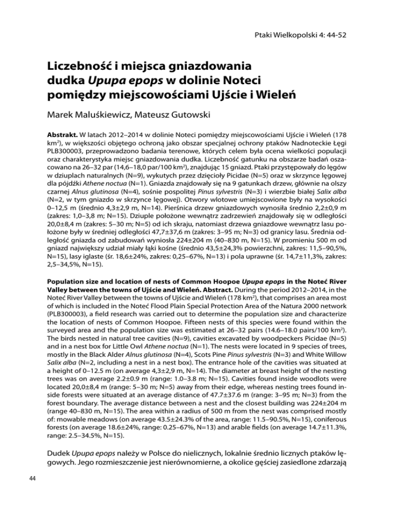 Liczebność i miejsca gniazdowania dudka Upupa epops w dolinie