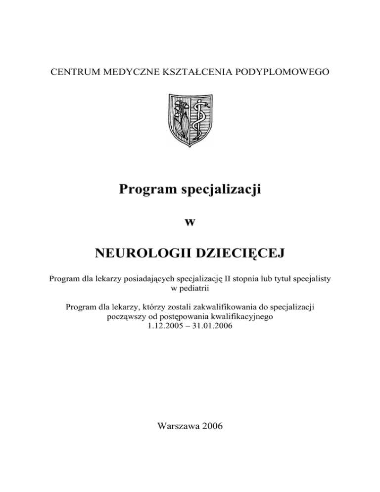 Program specjalizacji w neurologii dziecięcej dla lekarzy posiadających specjalizację II stopnia