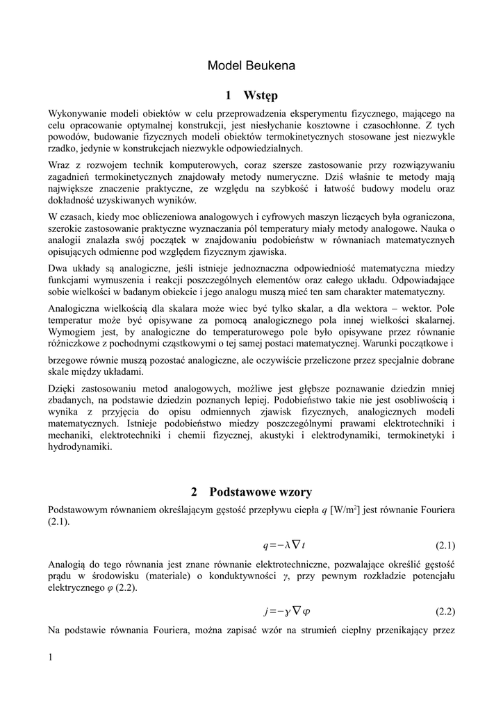 Model Beukena 1 Wstęp 2 Podstawowe wzory