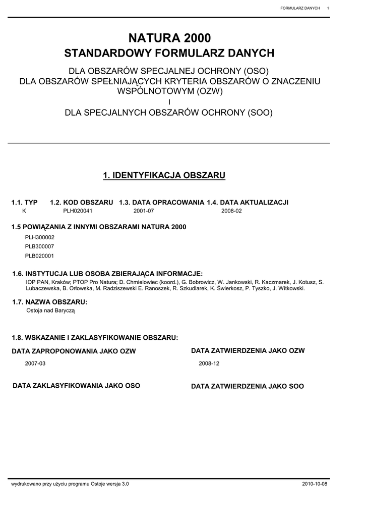 NATURA 2000 FORMULARZ DANYCH